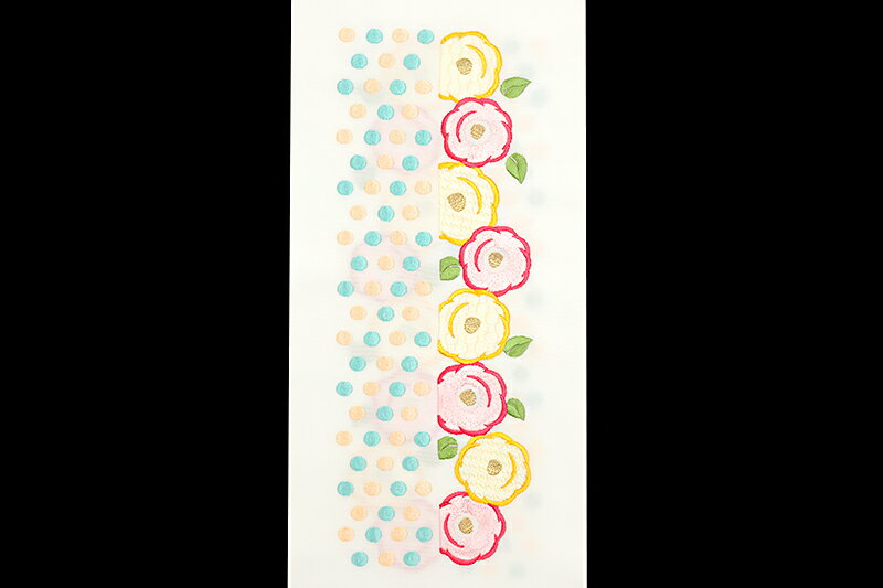 ■カラー ・地色:すっきりとした白 ・刺繍糸:濃淡のあるピンク、黄色 落ち着きのあるオレンジ、緑 など