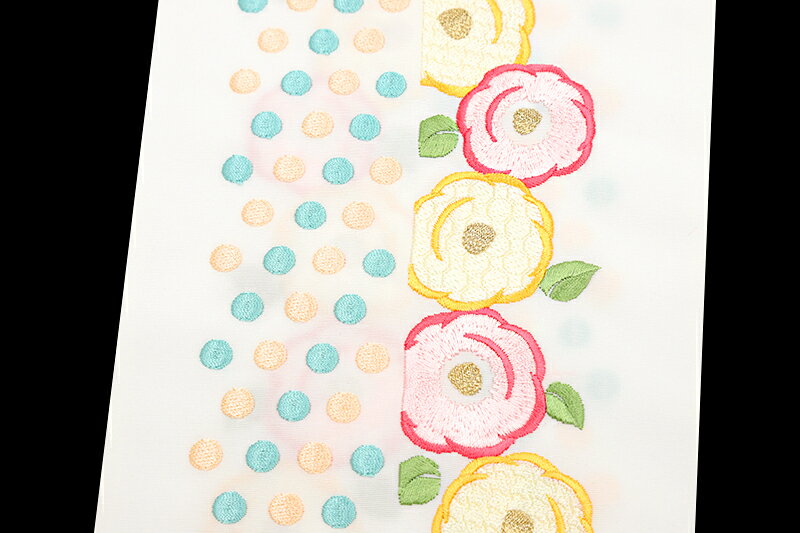 半衿 振袖 成人式 訪問着 刺繍 白地 金糸 礼装用 塩瀬 ピンク 黄色 オレンジ 緑 椿 水玉 シルエリー Silelly 結婚式 前撮り 卒業式 謝恩会 入学式 卒園式 入園式 七五三 お宮参り お茶会 パーティー 観劇 日本製 ポリエステル 着物 和装 半襟 レトロ アンティーク モダン 高級 可愛い No.10-7054 サイズ表 サイズ 長さ:約113cm 幅:約16cm 商品詳細