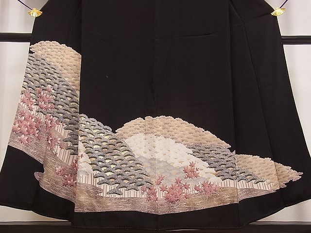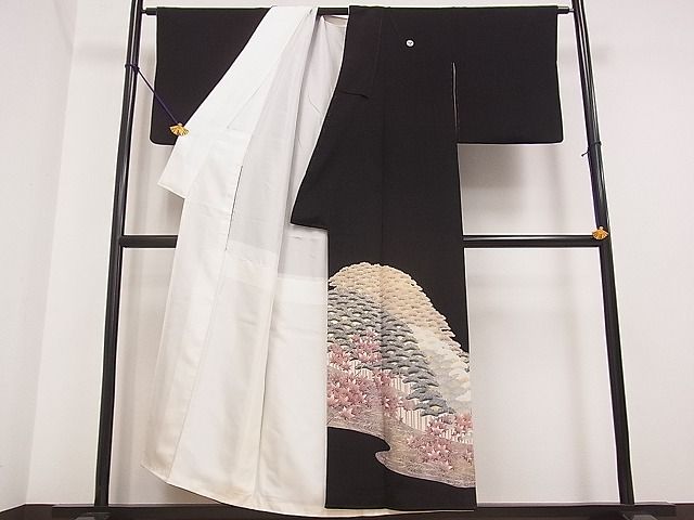 【正絹・五つ紋・比翼仕立て】 状態は接写画像のようにおくみ・後身頃・比翼に薄い汚れがございますが その他特に目立ったシミ汚れなどもなく大変良い状態です。