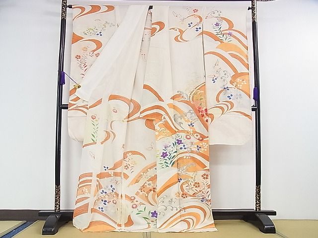 ■ 身丈 172cm(肩から) 裄丈 66cm 袖丈 104cm 袖幅 33.5cm 前幅 25cm 後幅 31cm 着物縫いこみ 内揚げ 0cm 裄 お袖側 約 1.5cm 身頃側 約 1cm