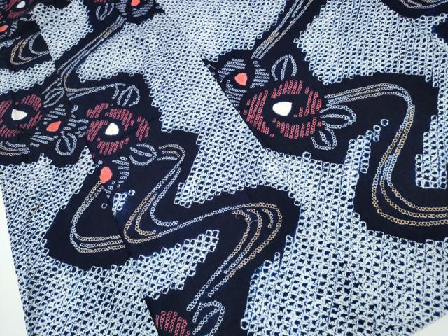 “鳴海絞り”ならではの表情を生み出す立体感と 淡いぼかしで息を吹き込まれ、 今にも動き出しそうな迫力を放っております。