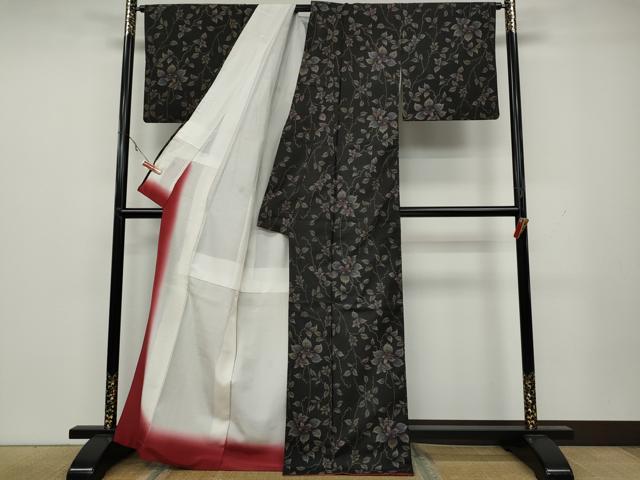 【正絹】 状態は接写画像のように表地所々・おくみ・上前・衿山・両袖口・胴裏・八掛に薄い汚れ、 胴裏に糸解けがございます。