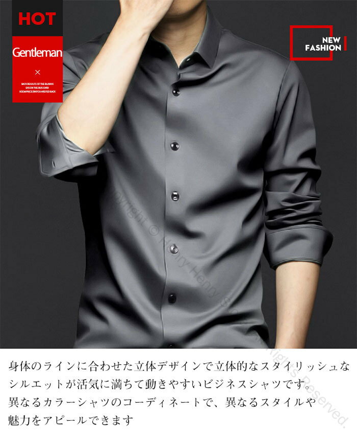 身体のラインに合わせた立体デザインで立体的なスタイリッシュなシルエットが活気に満ちて動きやすいビジネスシャツです。