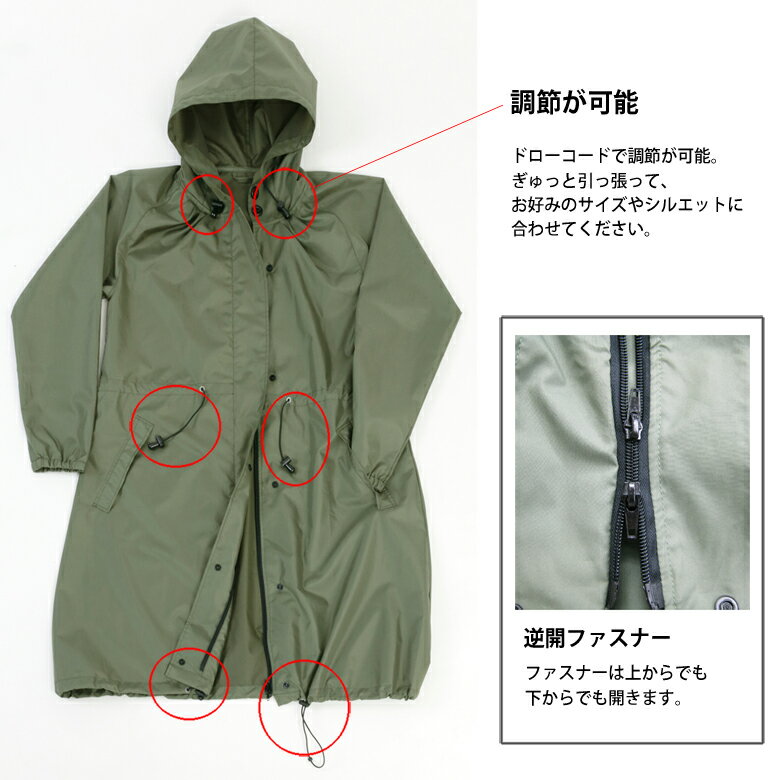 サイズ:フリーサイズ 胸囲:約106cm 着丈:約98cm 裄丈:約80cm 生地:ポリエステル100% 収納袋サイズ:縦24cm 開口部27cm この商品は、デュポンテフロンファブリックプロテクター加工が施されており、撥水・撥油・防汚機能に優れております。
