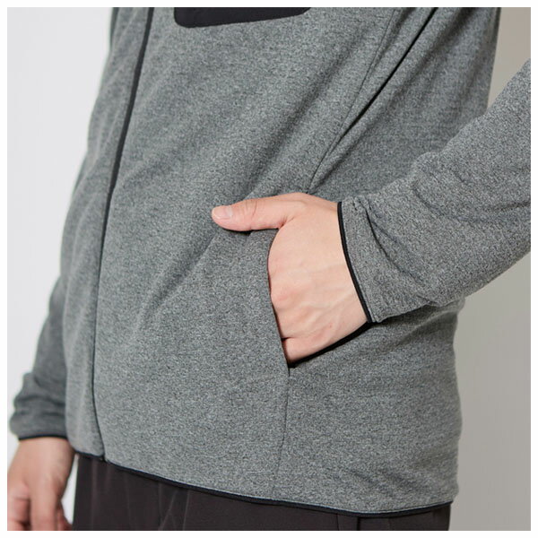 保温性に加えて、通気性や軽さ、伸びのある着心地が特徴のフルジップフーディです。