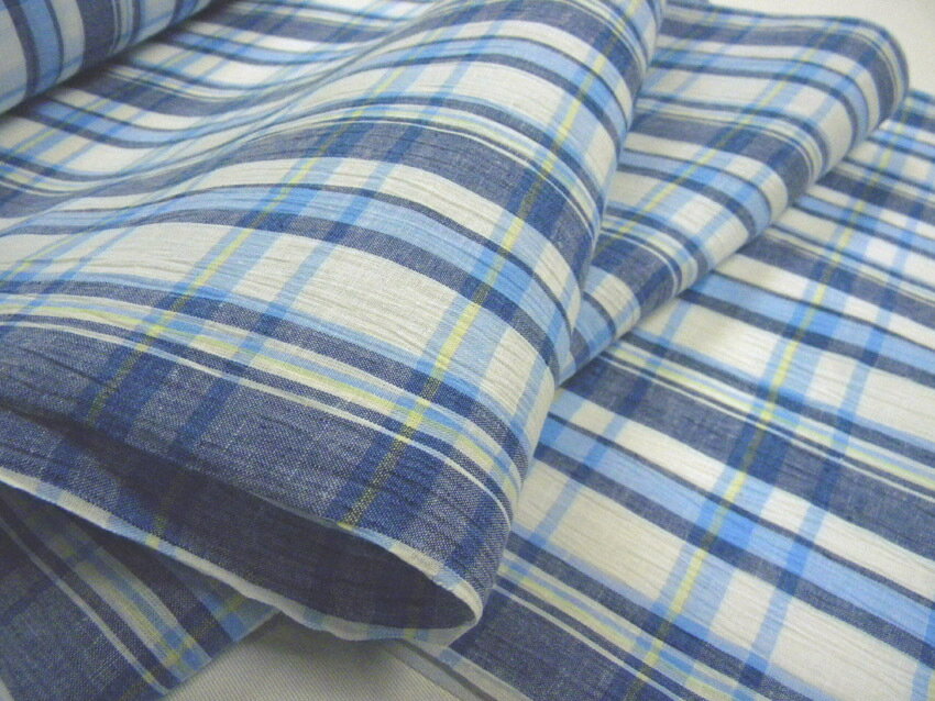 近江ちぢみ 綿麻縮み 格子絣藍(男女兼用夏の着物反物)浴衣反物 ワンランク上の伝統浴衣 仕立代11,800円(別途) おしゃれで涼しい夏の着物 送料サービス!お誂え仕立代11,800円(別途) おしゃれで涼しい夏の着物 送料サービス!お誂え仕立代11,800円(別途)●お仕立寸法はご注文いただきましたらこちらから連絡いたします。