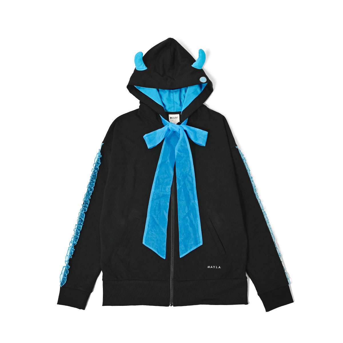 『Obey Me!』のアイコニックなフーディが登場! 刺繍やフリルなど、MAYLAならではのデザインで兄弟たちのパーカーをキュートに表現いたしました。