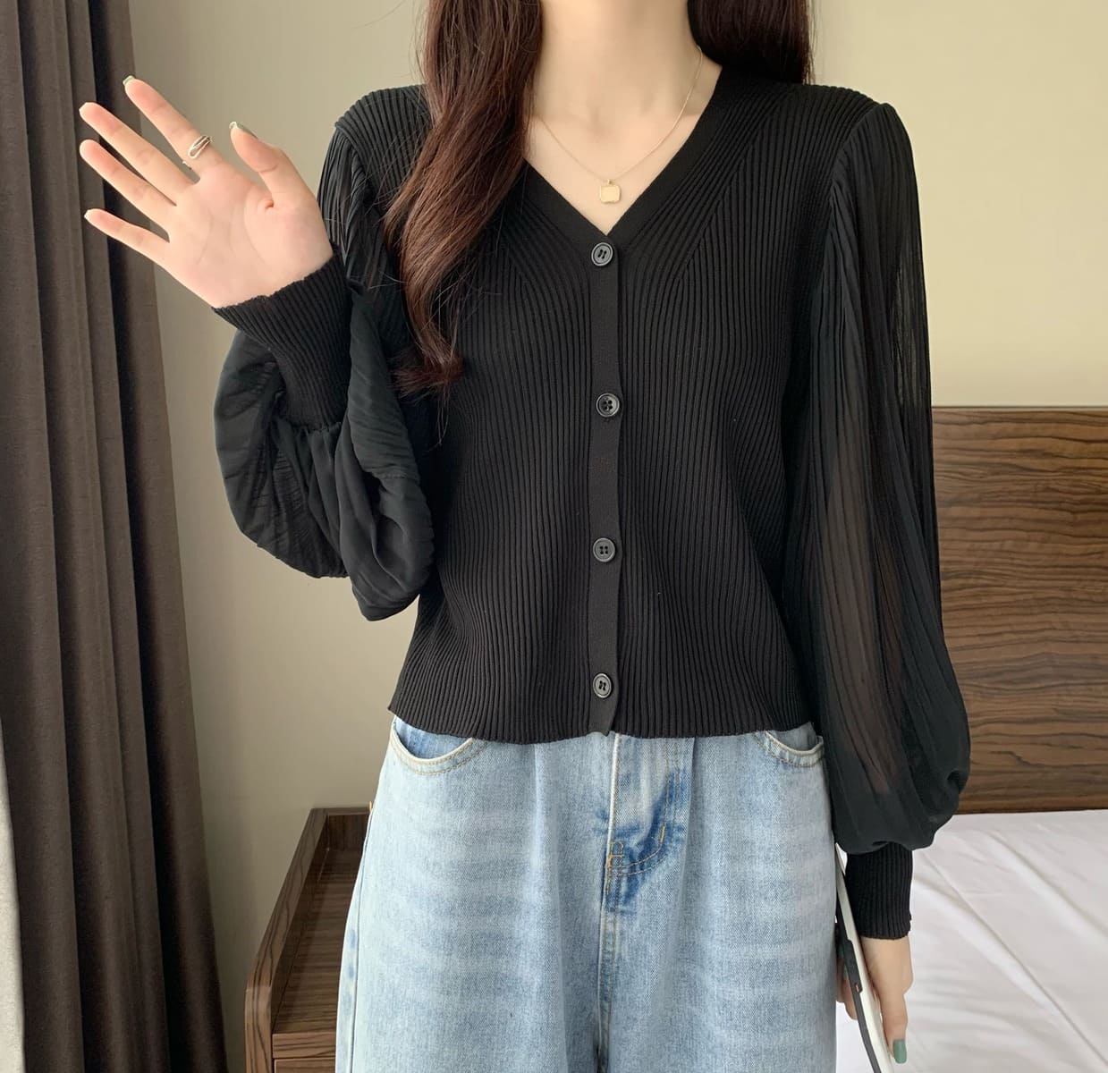 カーディガン トップス 中学生 高校生 通勤 ランタンスリーブ 春 秋 長袖 ボリューム ゆったり カジュアル ホワイト ブラック アプリコット ブラウン ホワイト 10代 20代 30代 40代 50代 綺麗 韓国 ショート丈 お出掛け かわいい デート 数量限定!流行りのゆったりシルエット♪キチンとにもカジュアルにも◎ 5