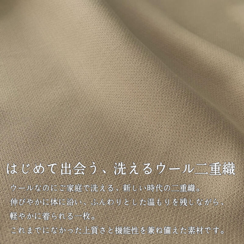 高級二重織ウール×ウォッシャブルの驚き 長年にわたり愛されてきたウールの二重織に、ついに「ウォッシャブル」と「ストレッチ」という機能が加わりました。