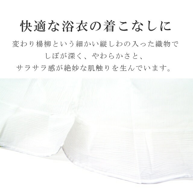 変わり楊柳という細かい縦しわの入った織物で、しぼが深く、やわらかさと、サラサラ感が絶妙な肌触りを生んでいます。