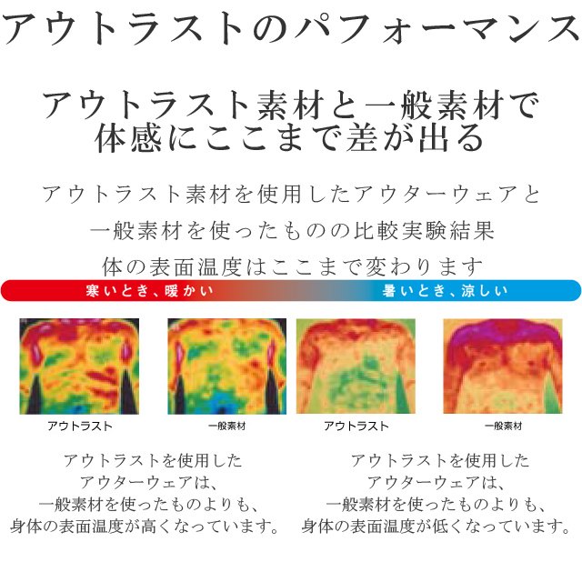 ・最先端の素材の肌着 NASAのために開発された温度調節素材「Outlast(アウトラスト)」を使用しています。