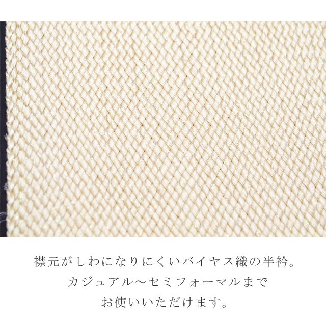 襟元がしわになりにくいバイヤス織の半衿をぜひ一度お試しください。