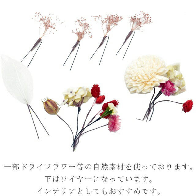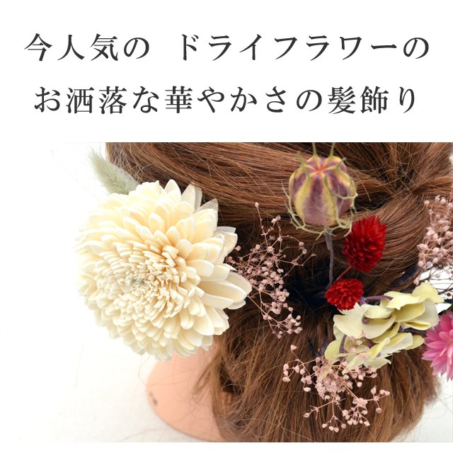 商品情報 髪飾り 成人式 振袖 花嫁 結婚式 訪問着 きもの キモノ ドライフラワー 着物 ブリザーブドフラワー 返品不可 中 小 日本製 手作り 赤 白 ベージュ ピンク 緑 skd0010-kimb22