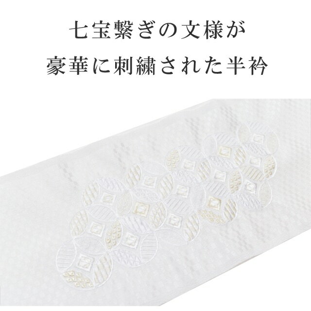 商品情報 半衿 刺繍半衿 彩小径 シルエーヌ 日本製 刺繍 半襟 はんえり 白 和装小物 振袖 成人式 結婚式 卒業式 入学式 sin8236-bob13