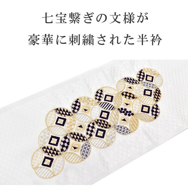 商品情報 半衿 刺繍半衿 彩小径 シルエーヌ 日本製 刺繍 半襟 はんえり 白 金 黒 和装小物 振袖 成人式 結婚式 卒業式 入学式 sin8240-bob13