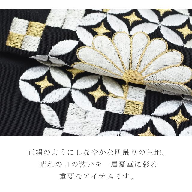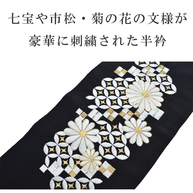 商品情報 半衿 刺繍半衿 彩小径 シルエーヌ 日本製 刺繍 半襟 はんえり 白 金 黒 和装小物 振袖 成人式 結婚式 卒業式 入学式 sin8261-bob13