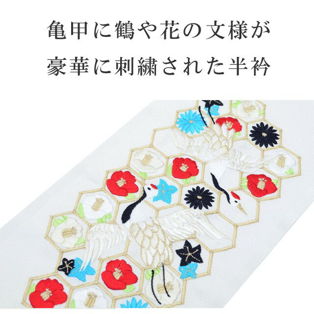 商品情報 半衿 刺繍半衿 彩小径 シルエーヌ 日本製 刺繍 半襟 はんえり 白 金 赤 黄緑 青 黒 和装小物 振袖 成人式 結婚式 卒業式 入学式 sin8265-bob13