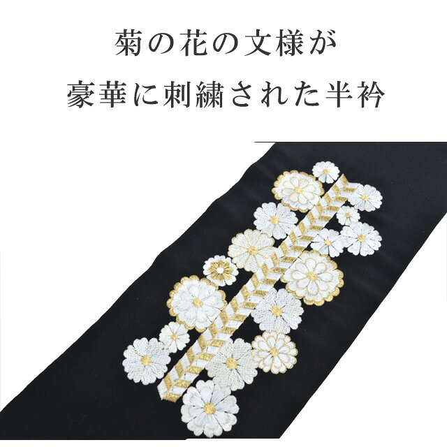 商品情報 半衿 刺繍半衿 彩小径 シルエーヌ 日本製 刺繍 半襟 はんえり 白 金 黒 和装小物 振袖 成人式 結婚式 卒業式 入学式 sin8277-bob13