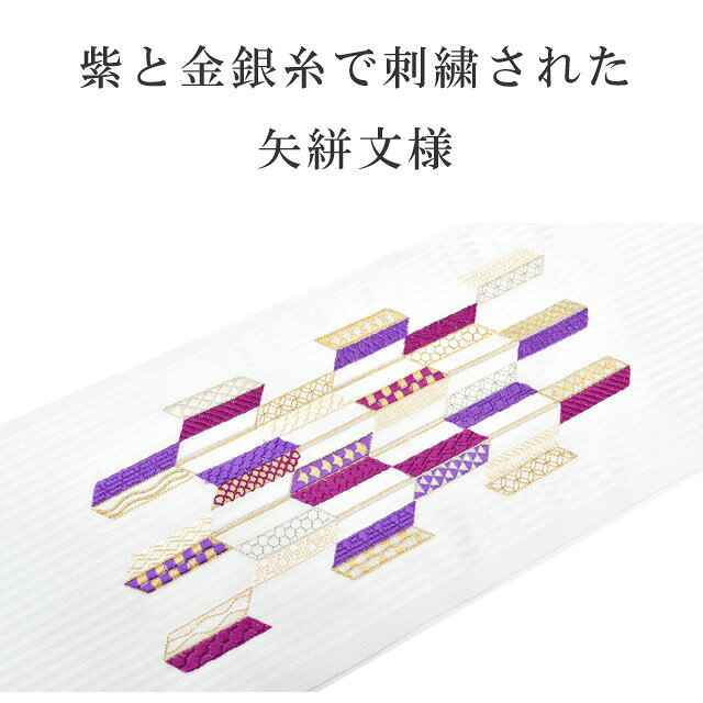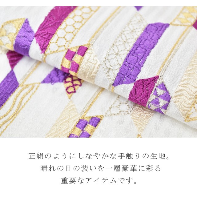 商品情報 半衿 刺繍半衿 彩小径 シルエーヌ 日本製 刺繍 半襟 はんえり 白 金 紫 和装小物 振袖 成人式 結婚式 卒業式 入学式 sin8287-bob13