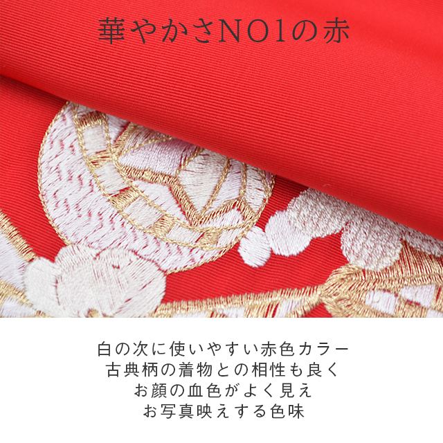 【新品】 ★説明 赤色地にとても華やかで繊細な刺繍が晴れの装いを一層豪華に彩ってくれます。