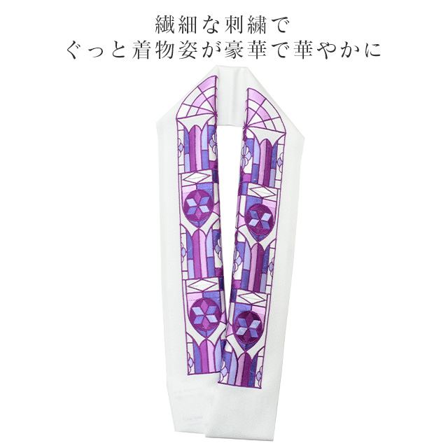★状態 日本製 ★素材 生地:ポリエステル100% 刺繍糸:レーヨン100% ★サイズ 長さ約114cm 幅約16cm 半衿 半襟 えり 着物 刺繍半襟 彩小径 LONGCIEL 白 紫 人気 可愛い お洒落 日本製 刺繍 はんえり 打掛 振袖 成人式 結婚式 卒業式 入学式 袴 花嫁 skf0520-bob14