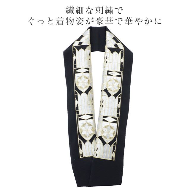 ★状態 日本製 ★素材 生地:ポリエステル100% 刺繍糸:レーヨン100% ★サイズ 長さ約114cm 幅約16cm 半衿 半襟 えり 着物 刺繍半襟 彩小径 LONGCIEL 白 金 黒 人気 可愛い お洒落 日本製 刺繍 はんえり 打掛 振袖 成人式 結婚式 卒業式 入学式 袴 花嫁 skf0523-bob14