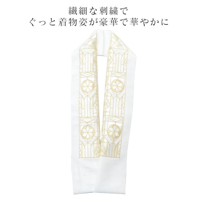 ★状態 日本製 ★素材 生地:ポリエステル100% 刺繍糸:レーヨン100% ★サイズ 長さ約114cm 幅約16cm 半衿 半襟 えり 着物 刺繍半襟 彩小径 LONGCIEL 白 金 ベージュ 人気 可愛い お洒落 日本製 刺繍 はんえり 打掛 振袖 成人式 結婚式 卒業式 入学式 袴 花嫁 skf0517-bob14