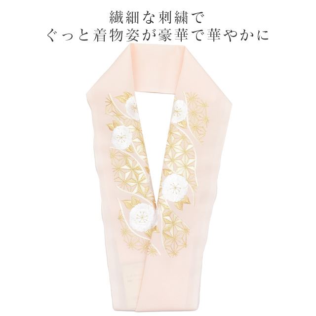 ★状態 日本製 ★素材 生地:ポリエステル100% 刺繍糸:レーヨン100% ★サイズ 長さ約114cm 幅約16cm 半衿 半襟 えり 着物 刺繍半襟 彩小径 シルエーヌ 日本製 刺繍 はんえり 打掛 振袖 成人式 結婚 卒業式 入学式 袴 花嫁 パーティー 人気 可愛い お洒落 白 金 ニュアンスカラー ピンク skf0633-bob13