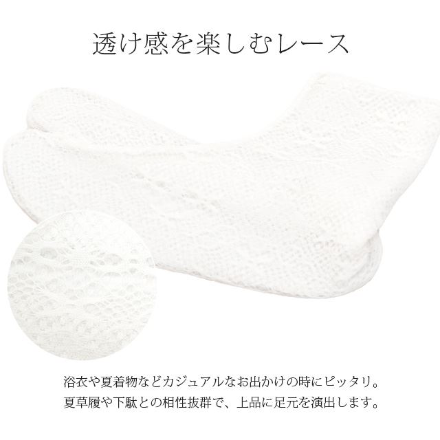 商品情報 ★説明 表地のレース生地に東レのナイロン、裏地に東レフィールドセンサーを使用した夏におすすめの足袋です。
