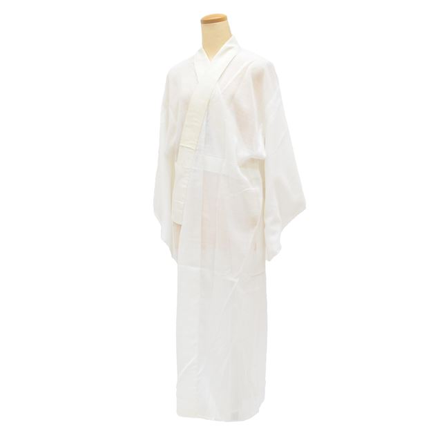 ★担当 検品:相澤 入力:岩元 長襦袢 夏物 単衣 化繊 リサイクル長襦袢 仕立て上がり 裄66.5cm 身丈125cm 白色系 絽 洗える 半衿付き tt0200b
