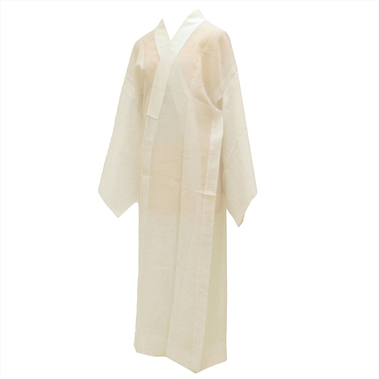 長襦袢 夏物 化繊 仕立て上がり リサイクル長襦袢 身丈122cm 裄62cm 白色系 露芝草文様 紗 洗える 半衿付き レディース