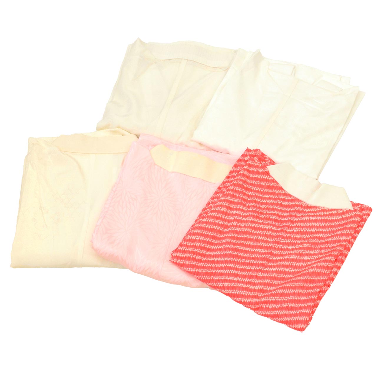 長襦袢 まとめて 5点セット Mサイズ 女性用 リサイクル長襦袢 白 ピンク 赤色系 花菱亀甲 菊文様 素材いろいろ 正絹 化繊 夏物あり 着物