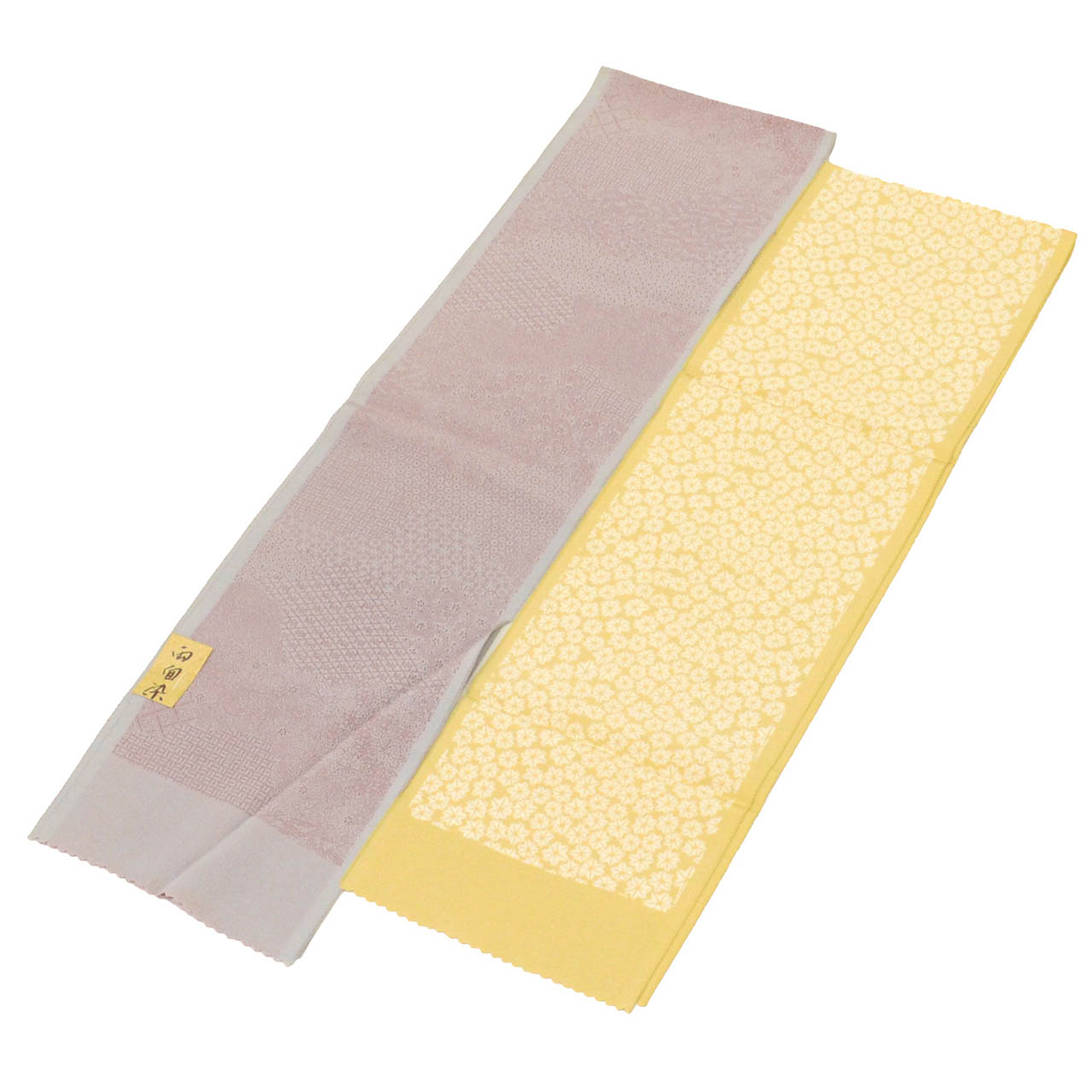 ※モニターの違いにより実際の色目と異なる場合がございます 宅配便発送の方 ゆうパケット発送の方 メール便発送の方半衿 2点セット リサイクル半衿 美品 正絹 グレー 黄色系 もみじ文様 長襦袢 女性 着付け小物 着物 和装小物 半襟