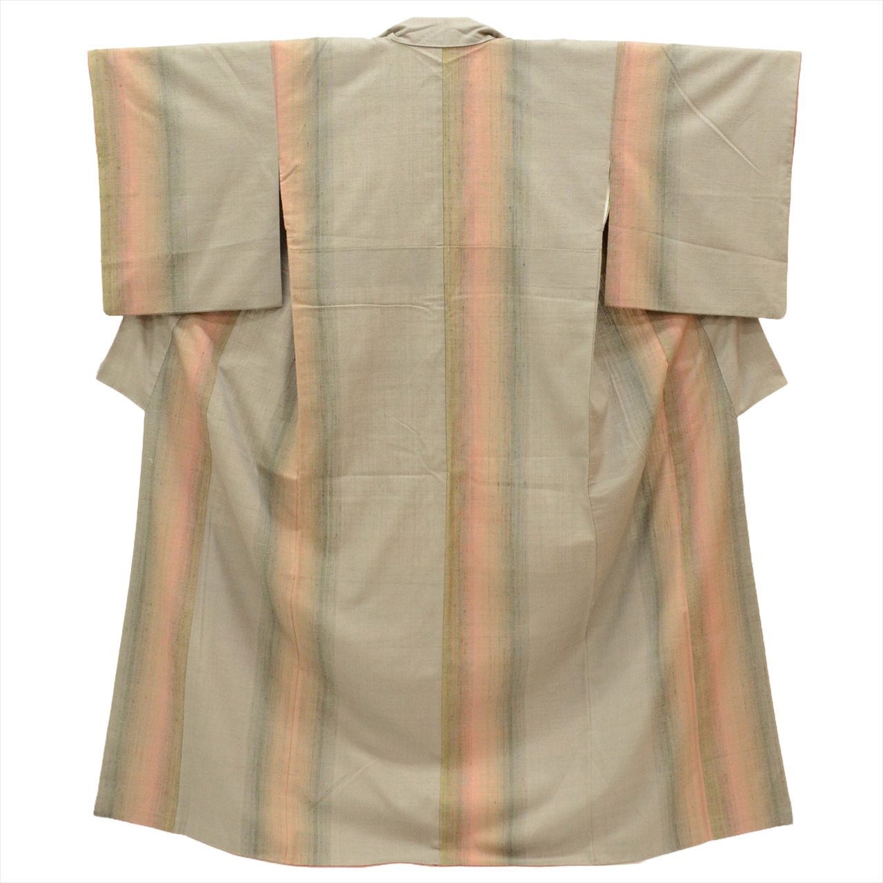結城紬 正絹 身丈157cm M 裄丈65.5cm リサイクル着物 仕立て上がり グレー色系 縞文様 袷 tt1550b