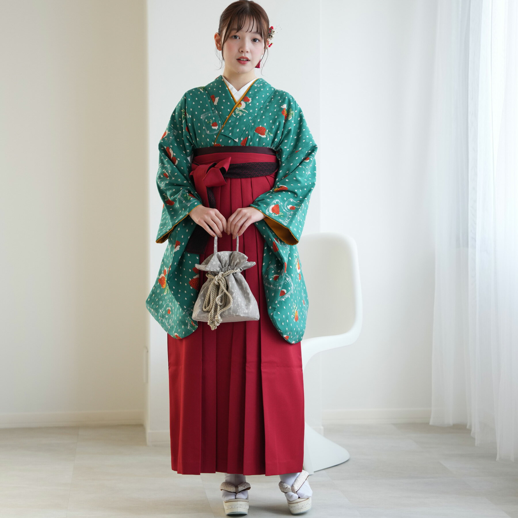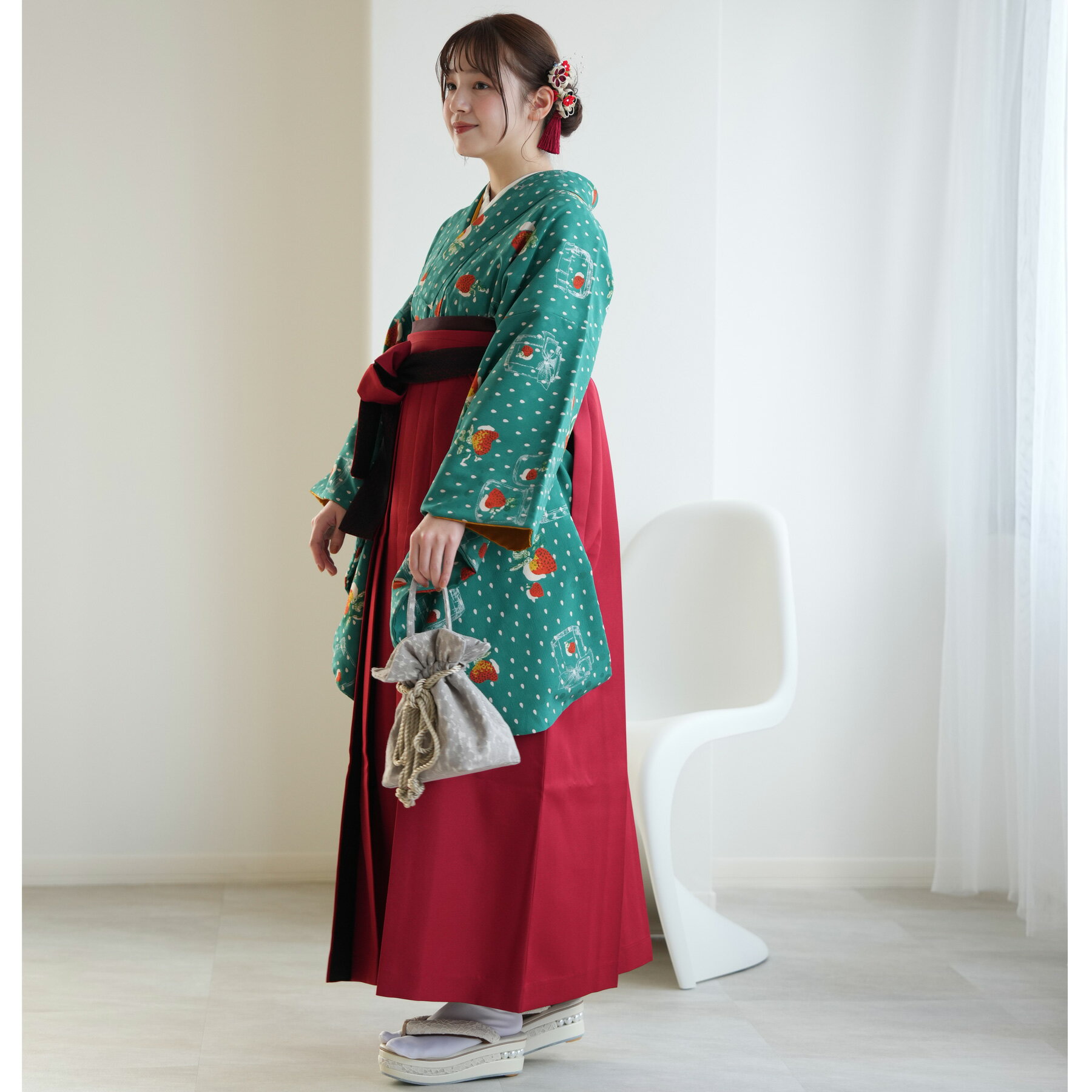 【セット内容】着物・袴・草履・バッグ・重ね襟(着物に縫い付済)・半巾帯・肌襦袢+長襦袢一体化インナー(白無地半襟付き)・前板・着付けベルト・ウエストベルト・腰ひも3本セット・伊達締め ・マジックベルト・衿芯・足袋(プレゼント)