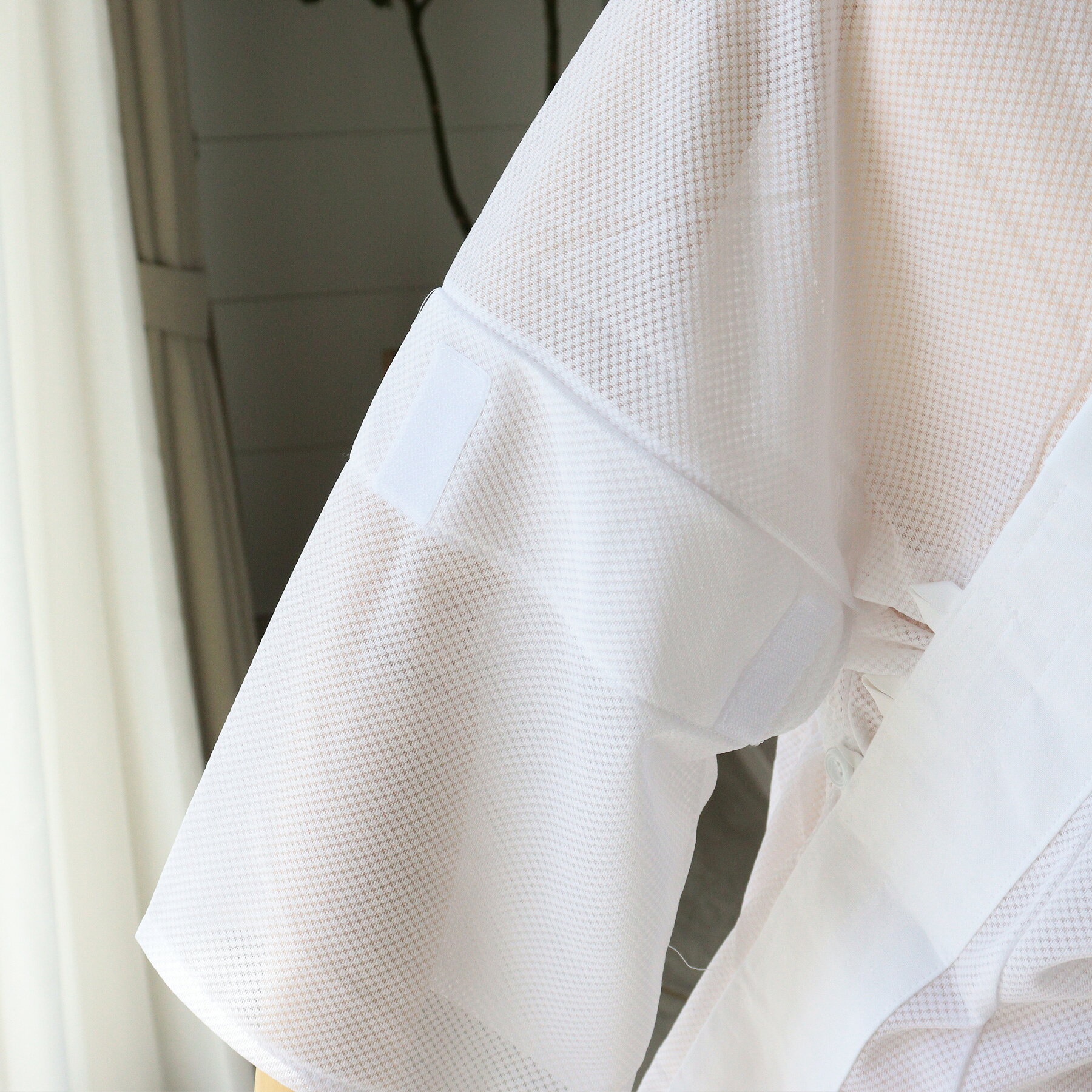 ■ Detail [ 素材 ] 身頃 ポリエステル100%掛け衿 ポリエステル100% [ 適応サイズ ] Mサイズ/Lサイズ [ 実寸サイズ ] ・Mサイズ身丈 約62cm 身幅 約63cm 裄丈 約51cm・Lサイズ身丈 約65cm 身幅 約67cm 裄丈 約53cm [ 機能・特性 ] 日本製 [ 原産国 ] 日本