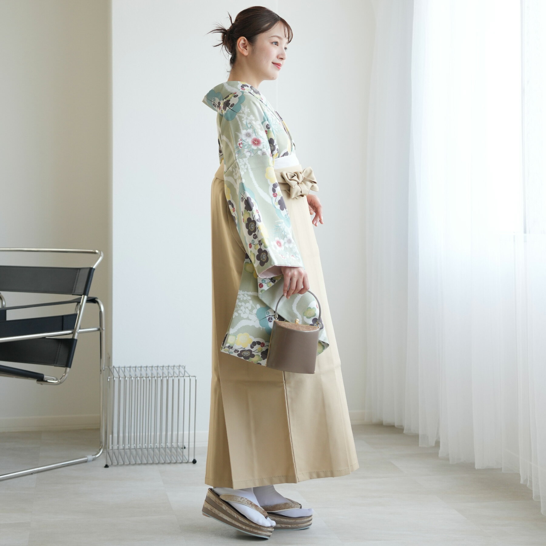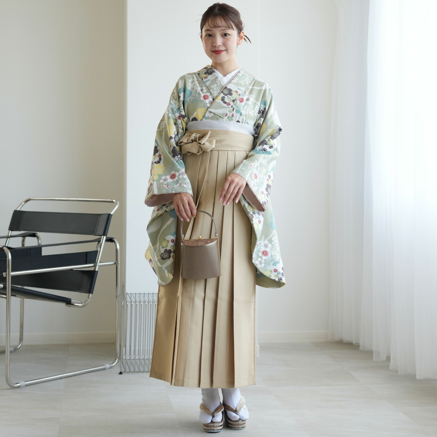 【セット内容】着物・袴・草履・バッグ・重ね襟(着物に縫い付済)・半巾帯・肌襦袢+長襦袢一体化インナー(白無地半襟付き)・前板・着付けベルト・ウエストベルト・腰ひも3本セット・伊達締め ・マジックベルト・衿芯・足袋(プレゼント)