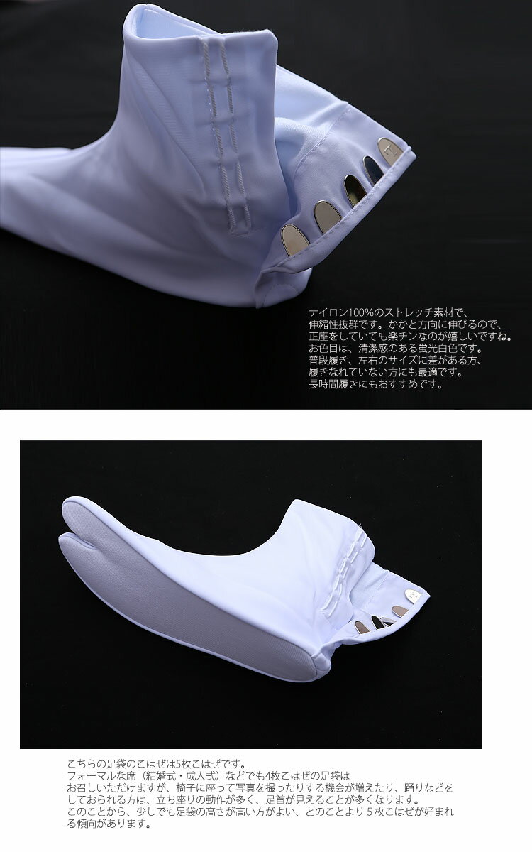 フォーマルな席(結婚式・成人式)などでも4枚こはぜの足袋は お召しいただけますが、 椅子に座って写真を撮ったりする機会が増えたり、 踊りなどをしておられる方は、立ち座りの動作が多く、 足首が見えることが多くなります。