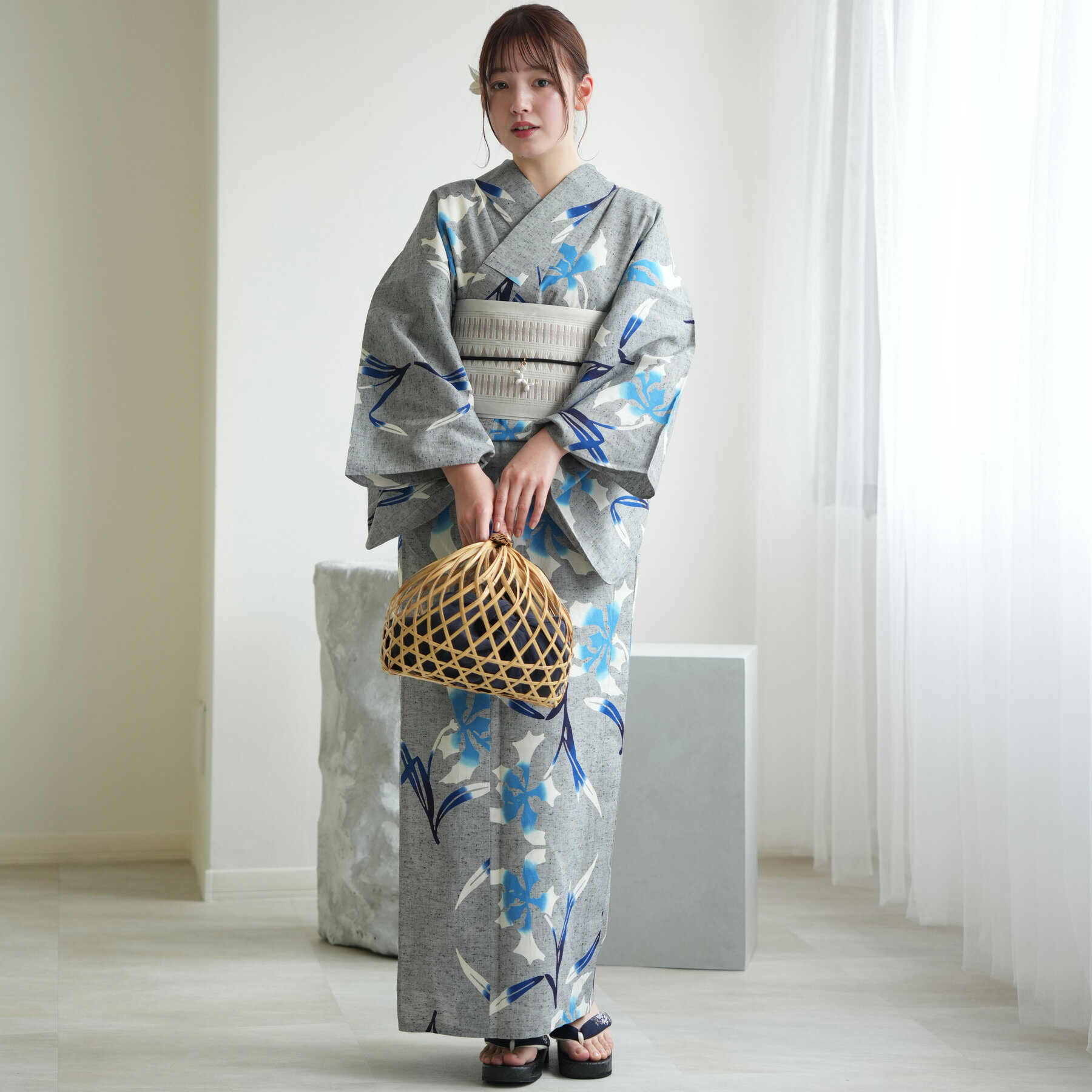 【素材】 浴衣:綿100% 帯:ポリエステル 下駄:桐