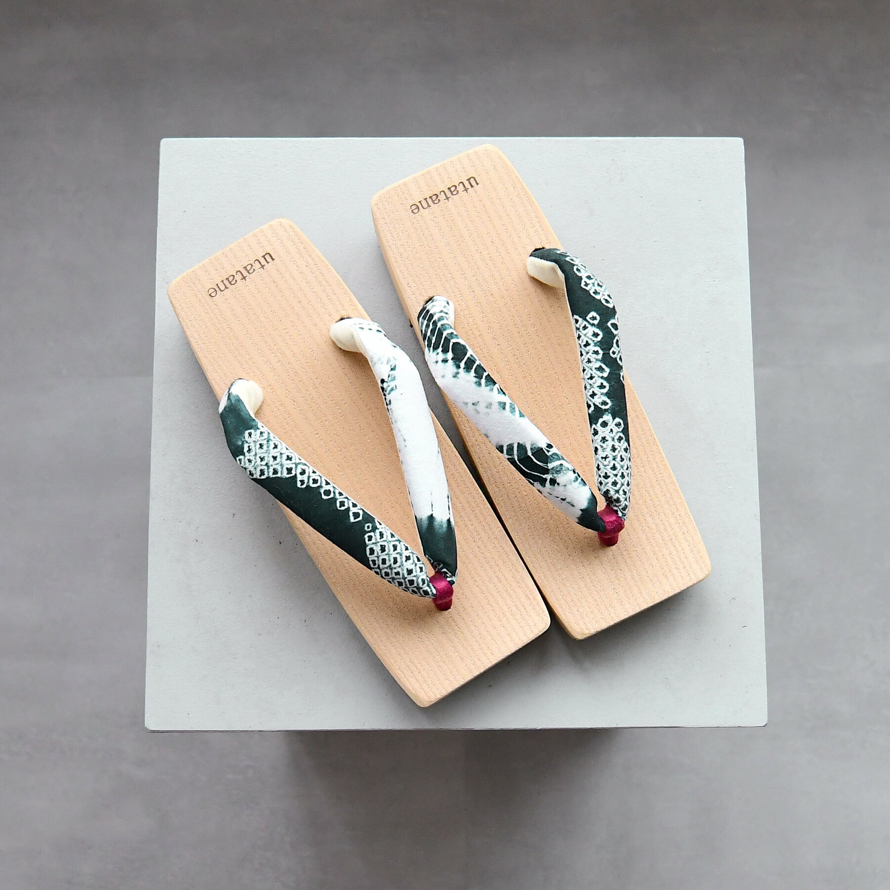 【素材】 台座:桐 鼻緒:綿100%(有松絞り)