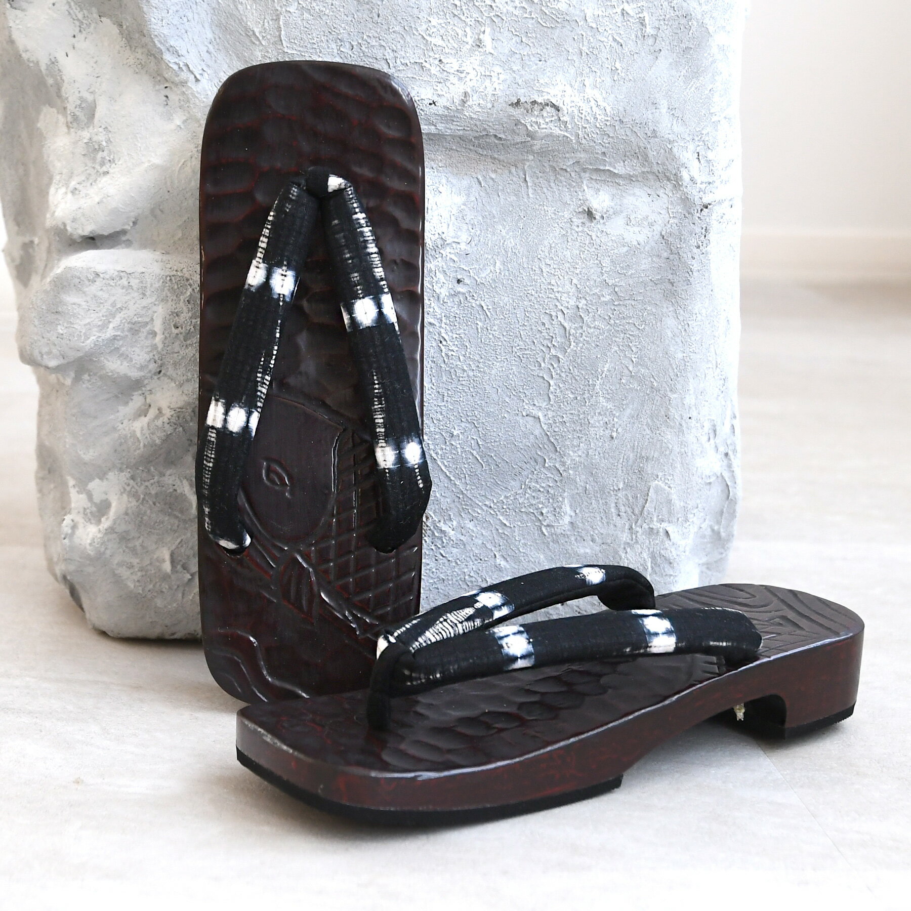 【素材】 台座:桐 鼻緒:綿100%(有松絞り)