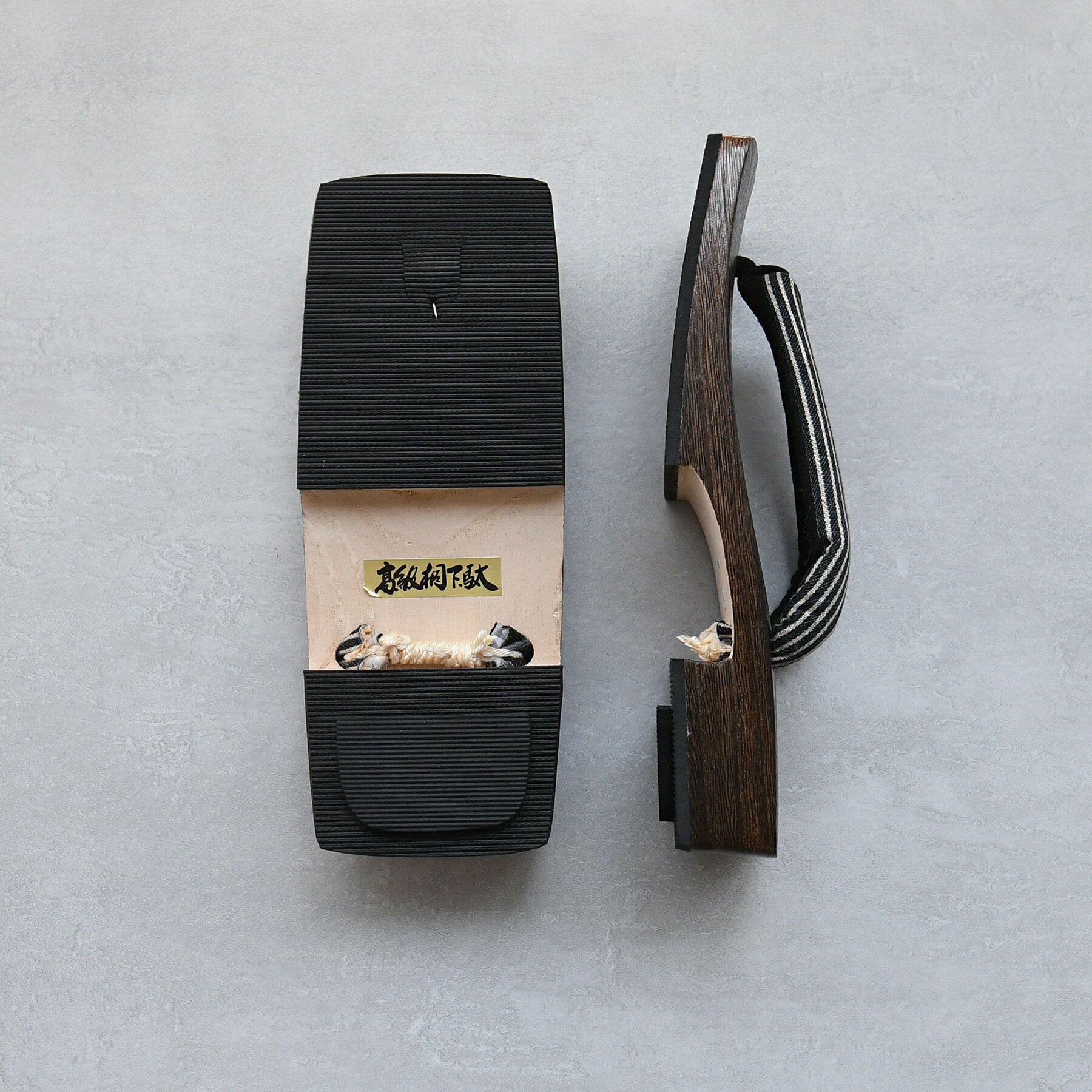 普段下駄を履き慣れていない人も安心、履きやすいと人気の「右近」下駄にメンズ下駄が登場 桐の木目が際立ちながらも汚れや足形が付いても目立ちづらい焼き加工の台座です。