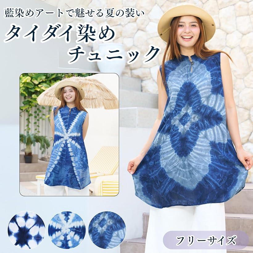 [藍染めアートが織りなす夏物語] 伝統的な絞り染めの技法を現代的にアレンジした、アーティスティックなチュニック。