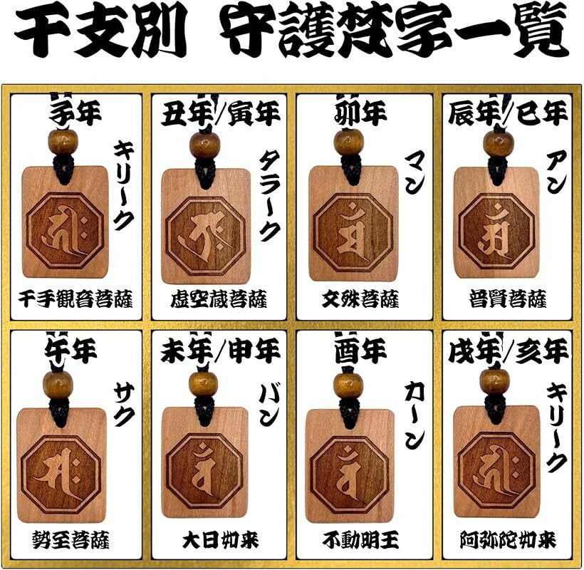 バリエーションコード : 2buvrurssh商品コード2buvrurssh商品名守護梵字木札守 干支別 国産桜使用木札ネックレス お寺 仏教 職人手仕上げ 日本産ブランドBSGカラーキリーク 「子年・戌年・亥年」サイズ等40x31mm「仏の智慧を象徴する聖なる一文字」 守護梵字は、古来より仏様を表す象徴的な文字として大切に受け継がれてきました。