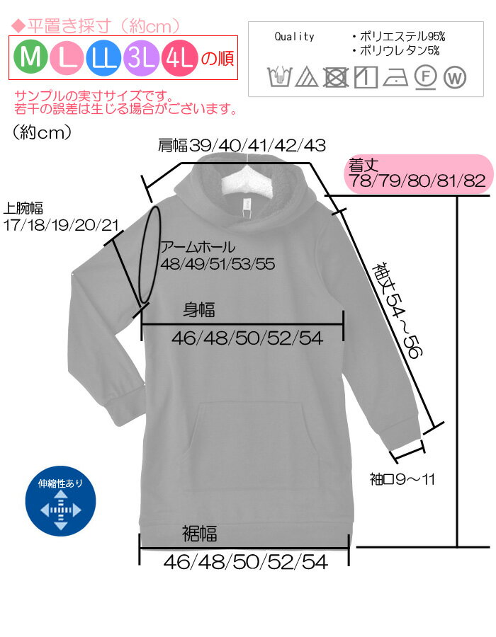 フロントのカンガルーポケットが何かと重宝! ≪MODEL:身長160cm≫ 素材 ・ポリエステル95%・ポリウレタン5% 生産国 china 洗濯表示