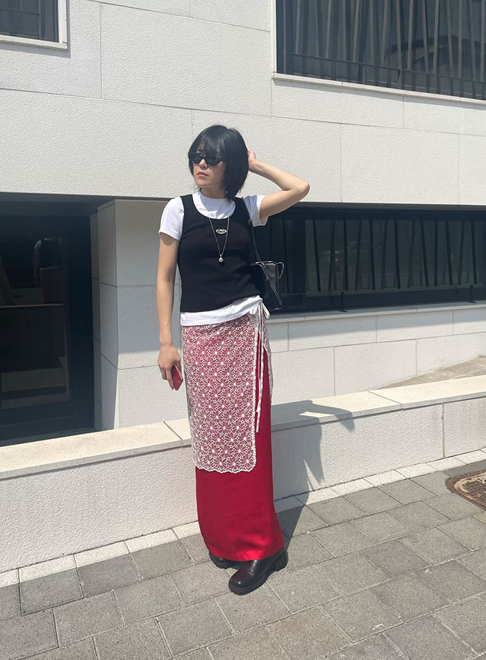 -point & styling- --- 今期一番取り入れたいアイテム!--- シアー感のある " レースレイヤードラップスカート " デニム・スラックス・スカート・ワンピース、、 相性さえ合えば、どんなアイテムにもレイヤードで楽しめて いつものコーデが一気にトレンドスタイルに! ◆ FABRIC ———————— 透け感:あり 伸縮性:なし 厚み:薄手 裏地:なし ———————— ◆ ATTENTION ————————