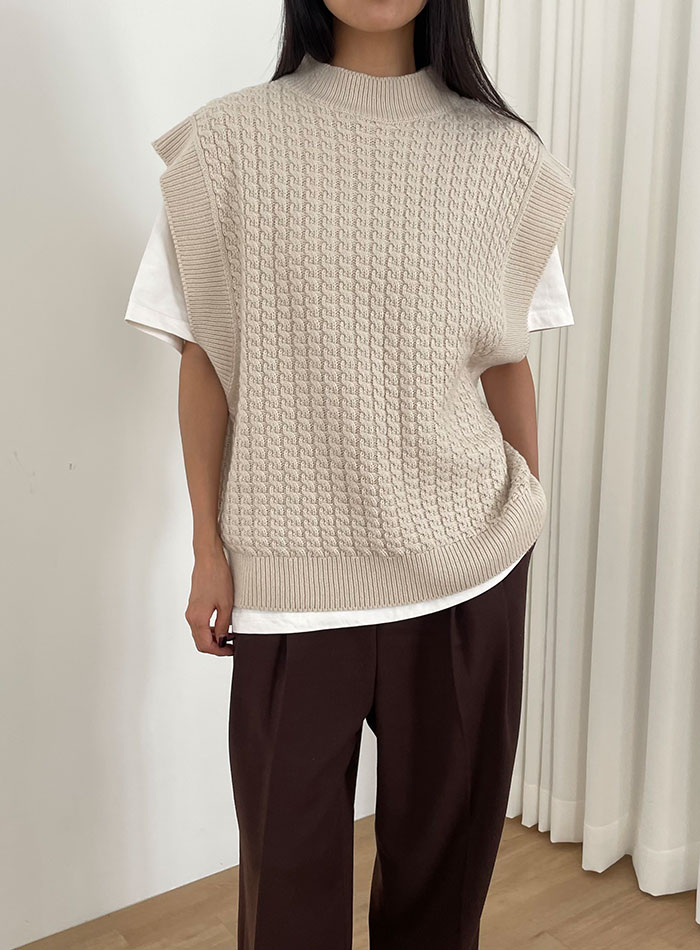 ———————— 透け感:なし 伸縮性:あり ———————— - cable over knit vest