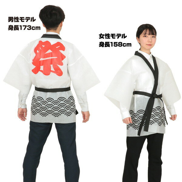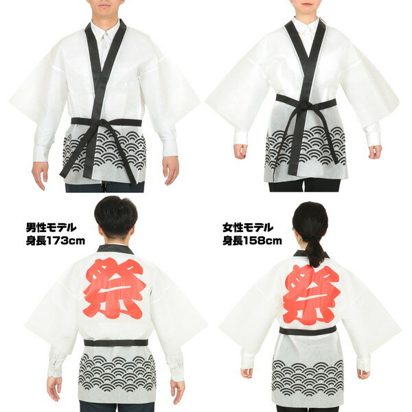 背中には迫力満点の「祭」文字プリントが施され、お祭りはもちろん、企業イベントや催し物にぴったりのアイテムです。