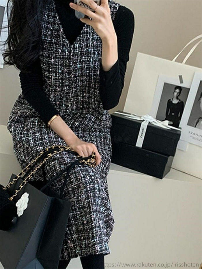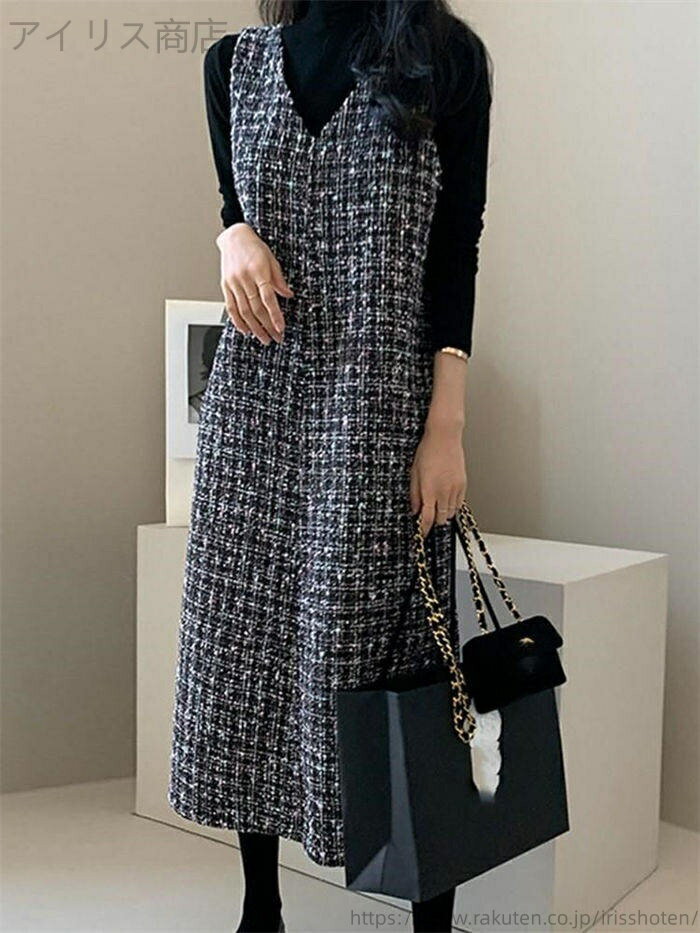 素材 ポリエステル 生産国 中国 キーワード 即納 ツイード ジャンパースカート 秋 冬 ラメ入り ジャンパースカート vネック レディース 大人 ノースリーブ ワンピース 秋冬 黒 きれいめ レディース ロング丈 大きいサイズ ジャンスカ オールインワン バックファスナー付き スリット 上品 通勤 オフィス OL 重ね着 おしゃれ レイヤード 秋 冬 30代 40代