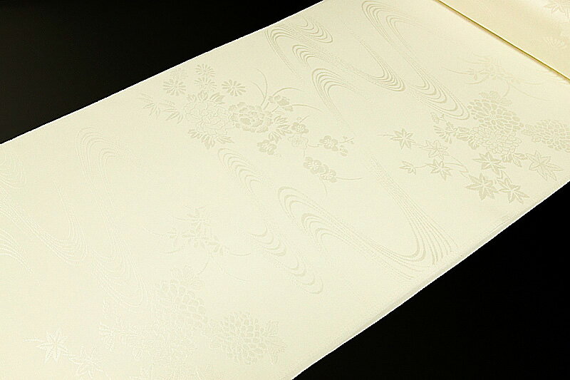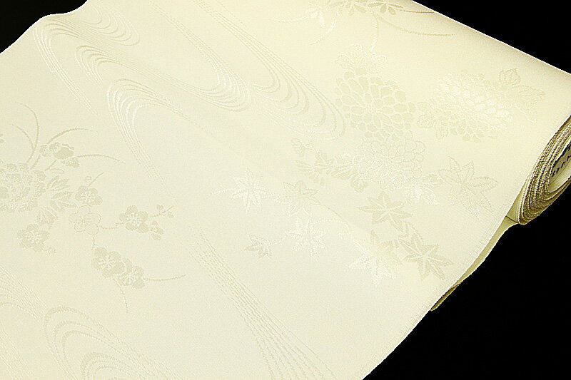 良質の丹後産綸子地を使用、流水草花文 上質な丹後産の綸子地を用い、色無地の染め職人により淡く上品な色目に染め上げました。